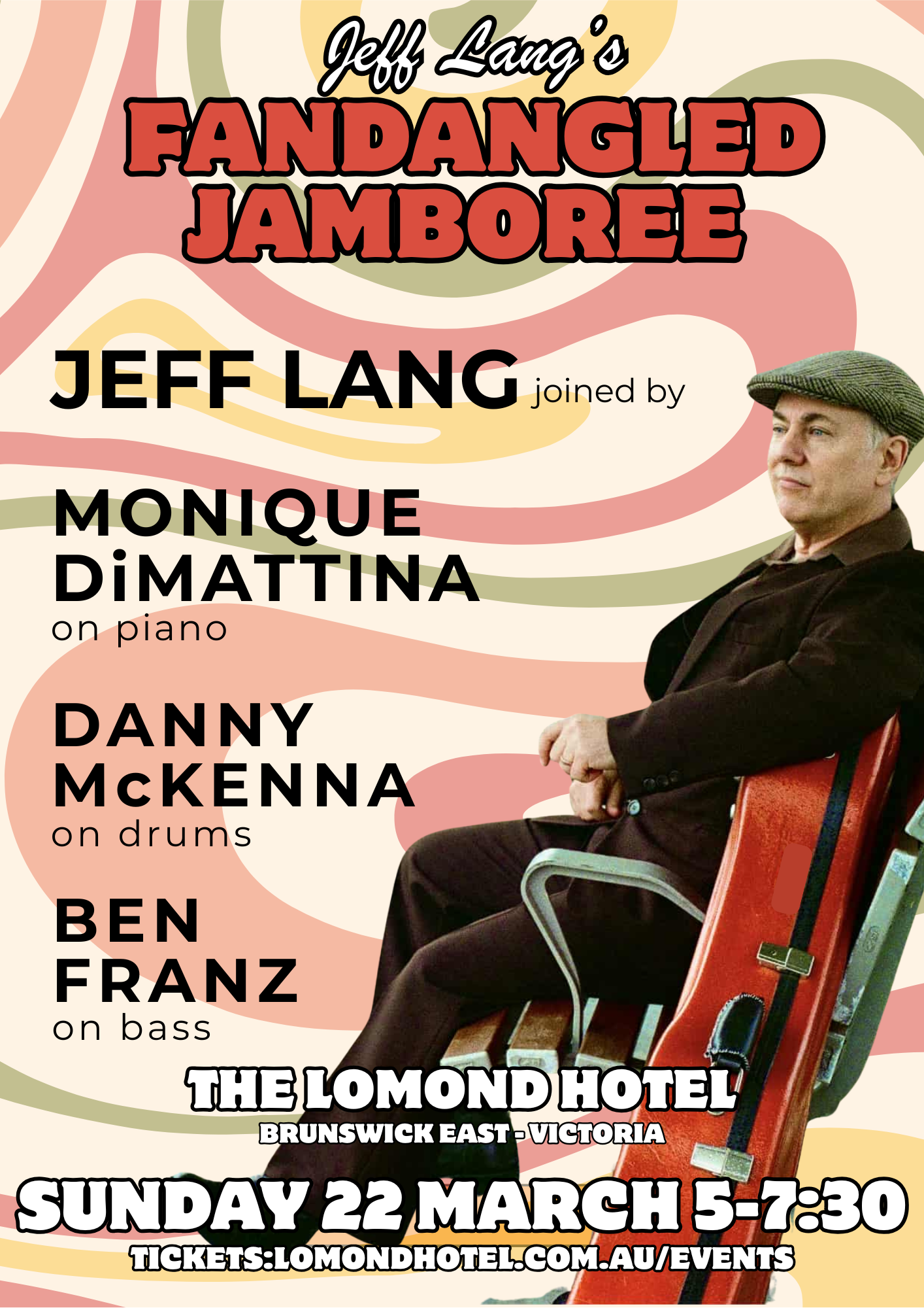 Hear ye! Hear ye! Gather round for 2026 residency of Jeff Lang's Fandangled Jamboree, the monthly Sunday residency where Jeff invites his esteemed comrades for a roller coaster ride of musical thrills and spills at the Melbourne musical institution The Lomond Hotel.