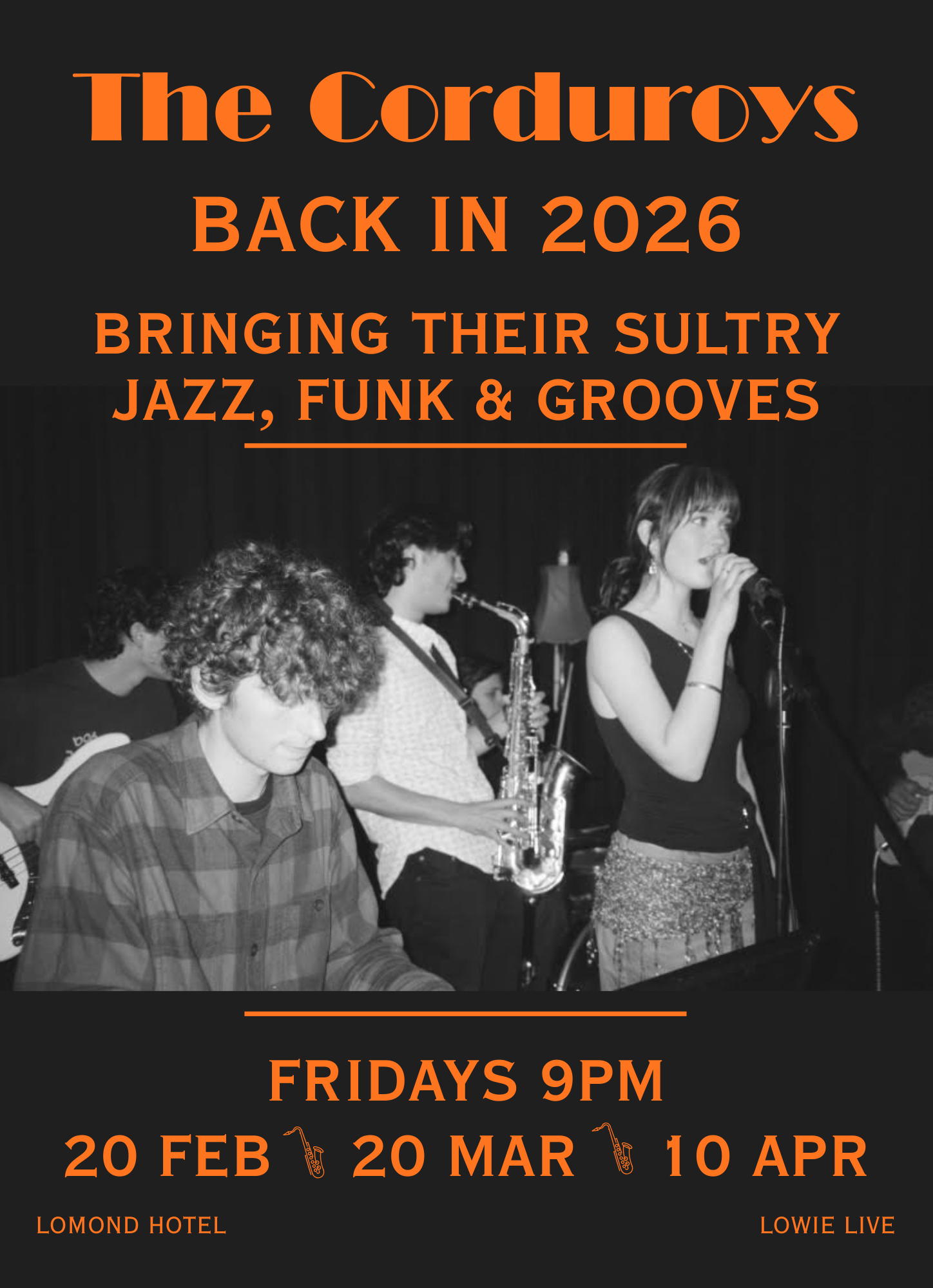 The Corduroys are a Melbourne-based ensemble that seamlessly blends infectious pop melodies with the rhythmic grooves of funk and the sophisticated harmonies of modern jazz. What began as a high-energy cover band has evolved into a formidable force, now captivating audiences with original compositions that pulse with creativity and passion. Fronting the ensemble is a vocalist whose talent is nothing short of extraordinary.