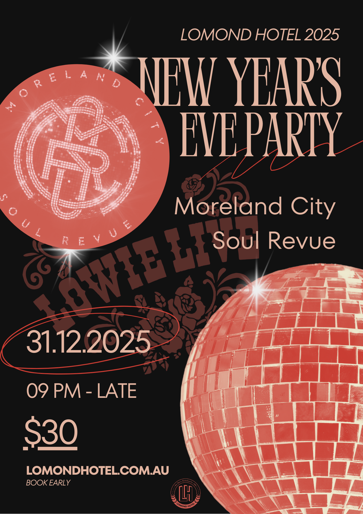 Dance your way into 2026 with The Moreland City Soul Revue at the Lomond Hotel! This powerhouse Melbourne icon brings the classic soul of Stax, Motown, and Muscle Shoals to life with infectious energy and groove. Fronted by the intoxicating and intoxicated Paul Slattery, with Adrian Whitehead (keys), Yuri Pavlinov (bass), Sam Young (drums), and Jacob Cole (guitar), this band delivers a high-energy celebration guaranteed to keep the dancefloor moving all night. Start your new year with the best feel-good vibes on offer!