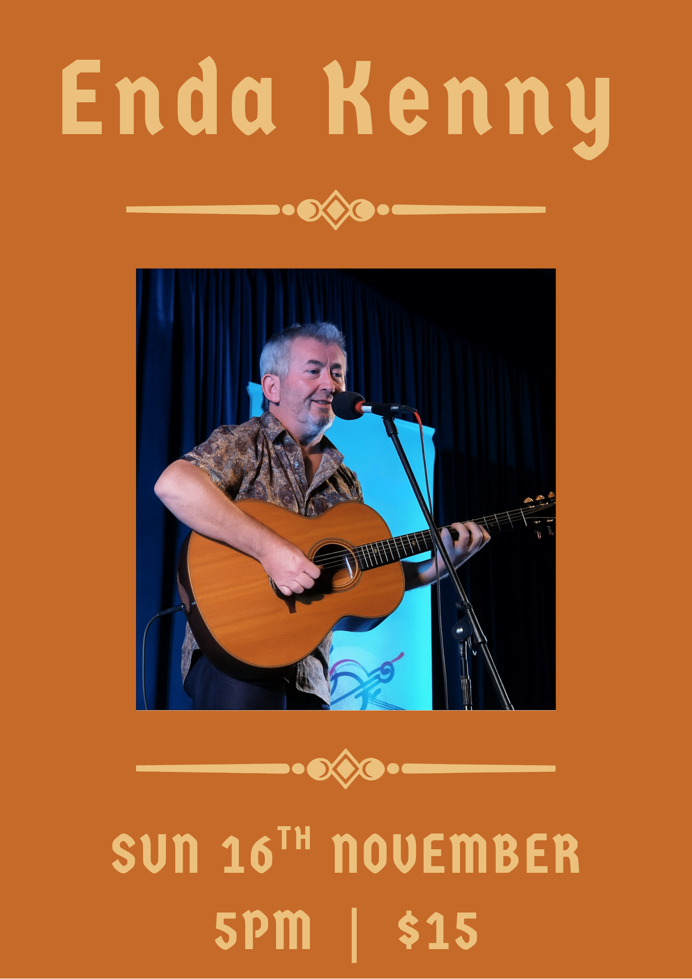 Now residing near Mount Beauty in the Victorian Alps, Enda is touring extensively throughout Australia and is a regular visitor to New Zealand, UK, Ireland, Holland and Germany. Enda is the latest Artist of The Year at Newstead Live Music Festival and is a nominated finalist in the 2024 AFMA (Australian Folk Awards) as Artist of The Year -Solo and also The People's Choice Award.