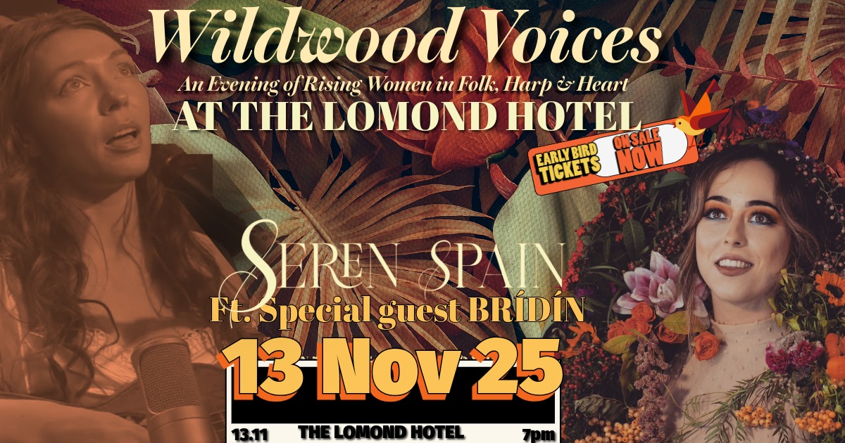 BRÍDÍN, a dear friend of Seren’s, will be joining on stage and cannot wait to showcase her connection to the harp & celtic flute, whilst supporting Seren after playing together earlier this year at Your Roots Are Showing Showcase Conference, in Killarney Ireland.