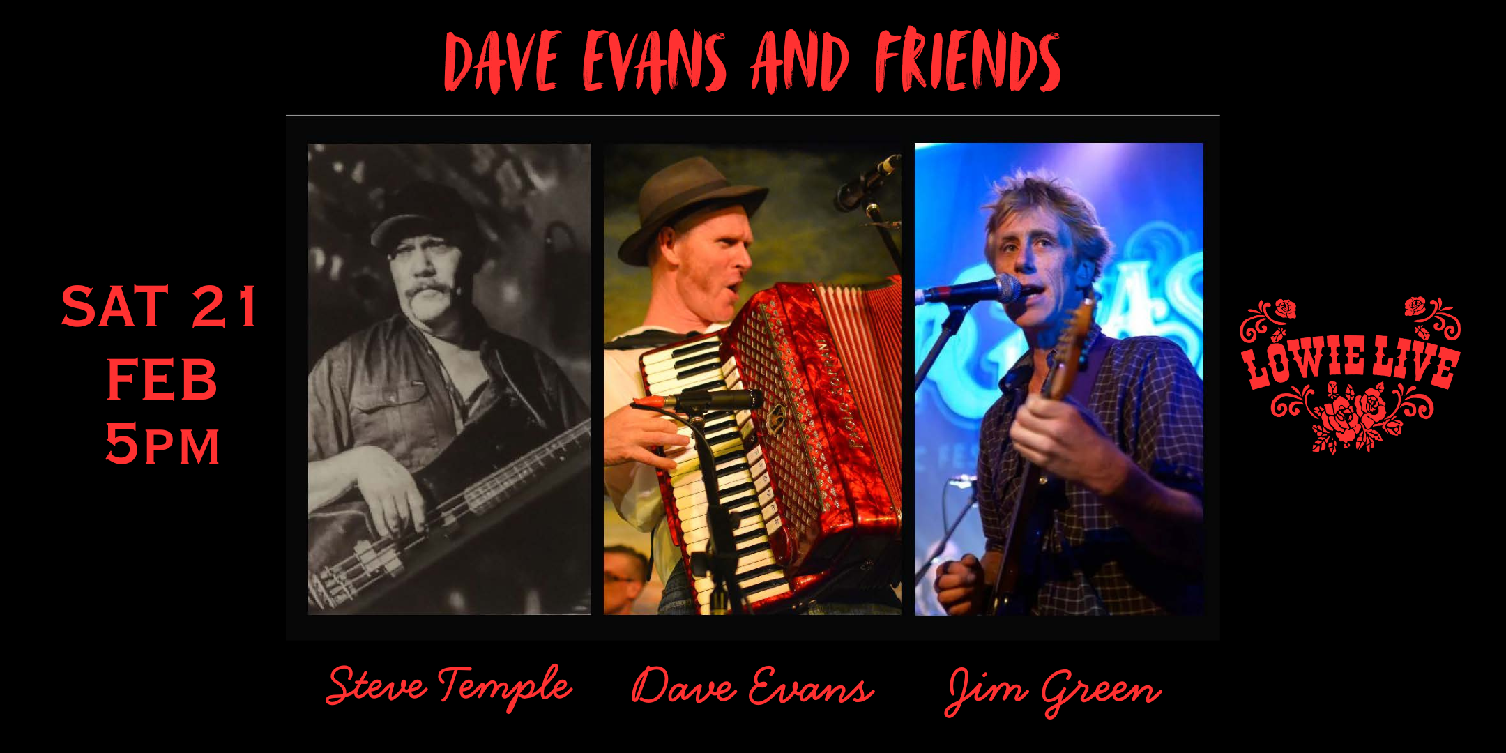 Lowie Live Presents Dave Evans with Jim Green & Steve Temple. Jazz, Folk, Country, Funk. Songs we love to sing....